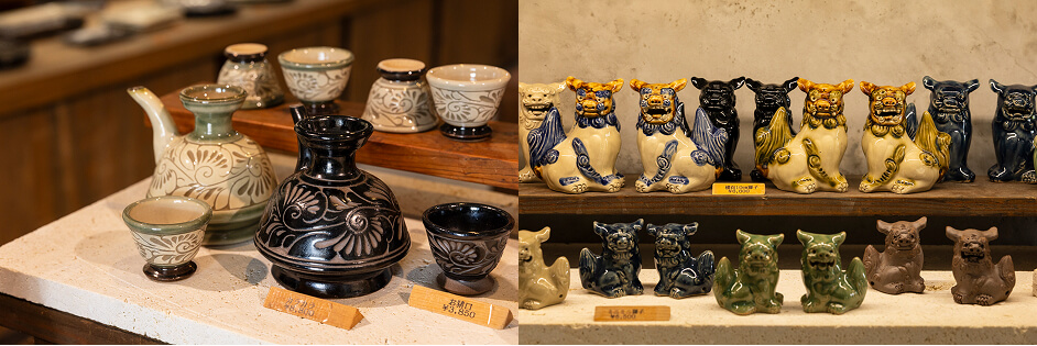 どのお店も個性的で、壺屋のまちを盛り上げる魅力にあふれている。また、器やシーサーを作る現場を見学できる「育陶園 工房」、シーサーや絵付けなど陶芸体験ができる「壼屋焼やちむん道場」もある。