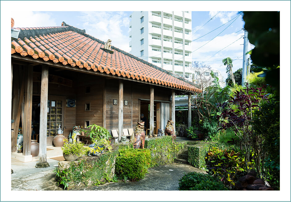 外観も壺屋らしさにこだわった「壼屋のいりぐち」は、その名のとおり、昔から続く壼屋の景色、沖縄の景色を未来へつなぐための入り口だ。育陶園は壼屋のまちと共に歩んできた。高江洲さんは壼屋という場所をとても大切に思い、育陶園として壼屋の景色を残す活動に取り組んでいる。
